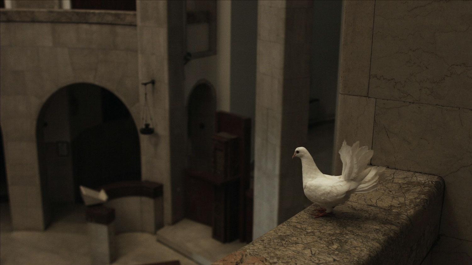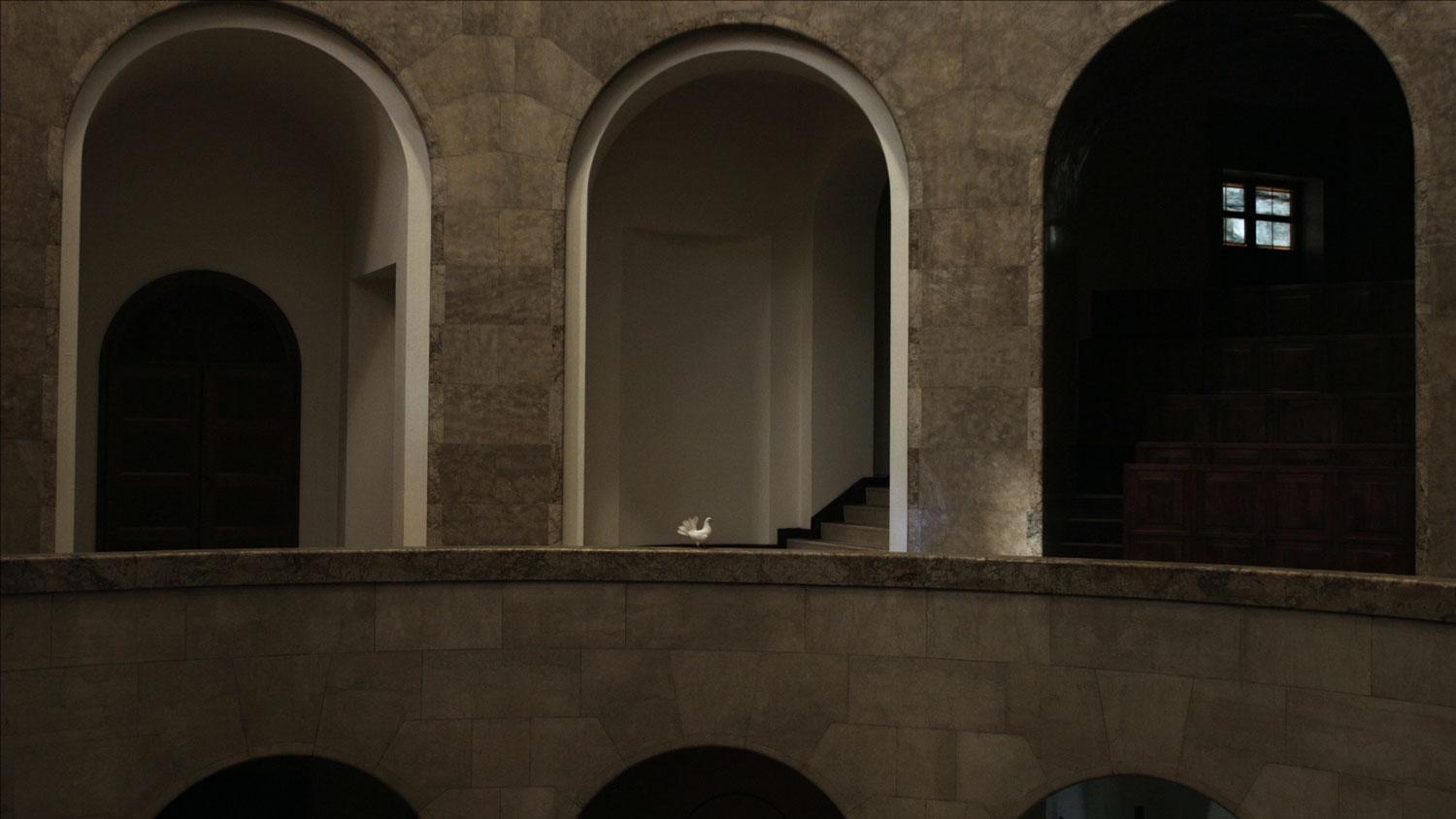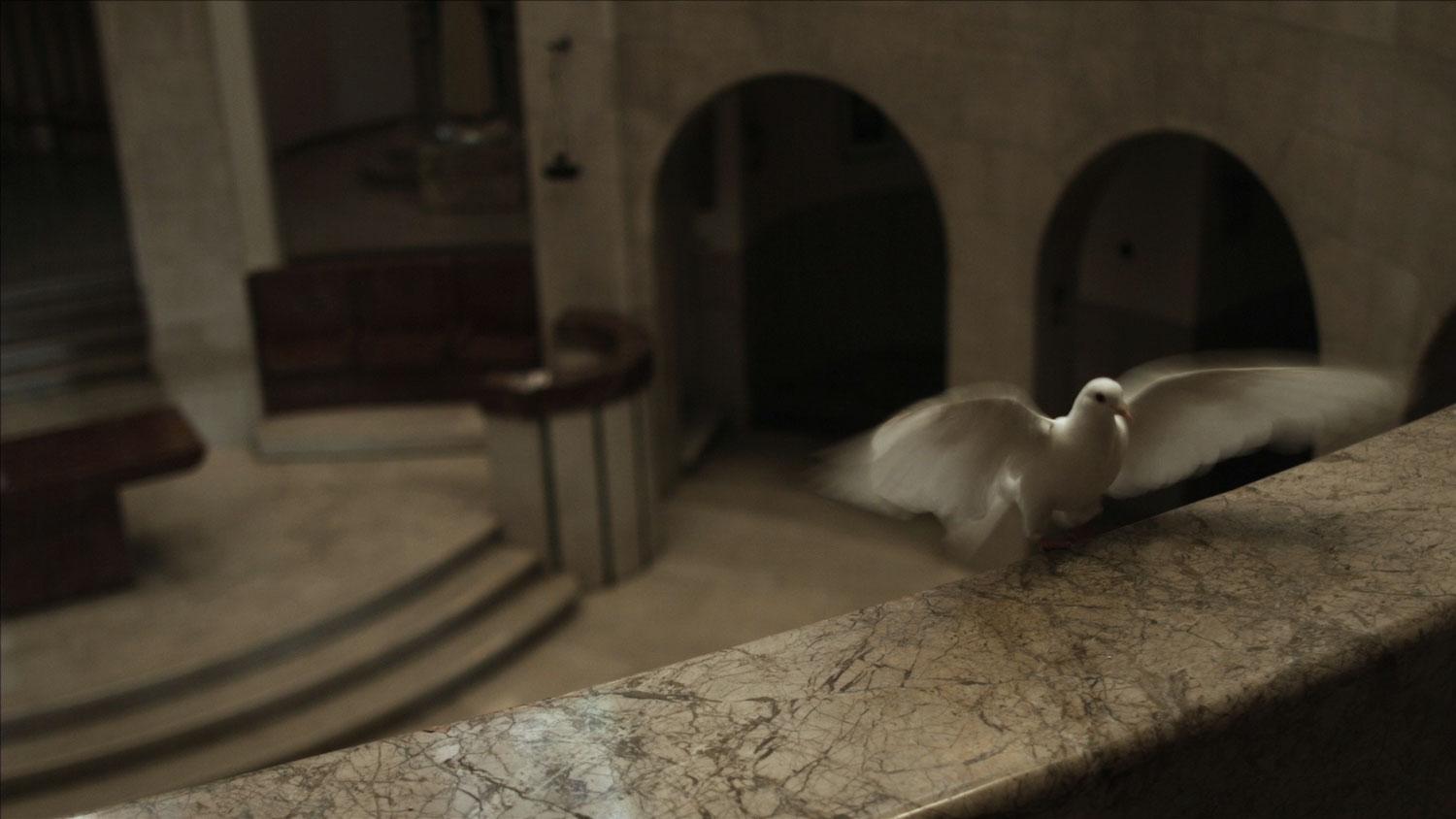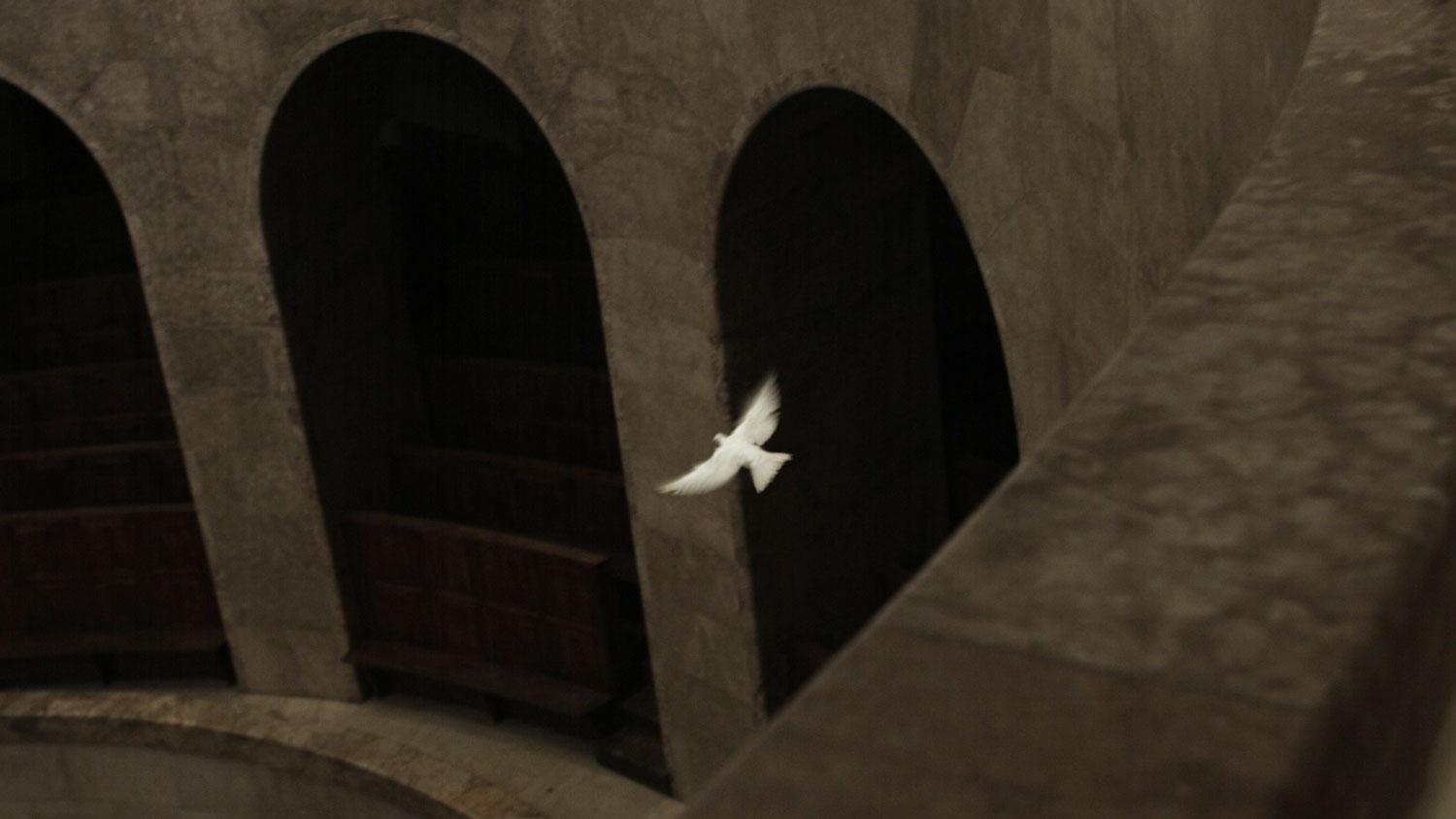 The video was shot inside the Niguarda Chapel. It follows the doves flight as it draws the viewer to the Monumentalism style of the Chapel’s architecture, before revealing Sironi's stained glass window’s fine points.